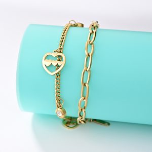 2024The new women’s bracelets do not lose color summer love stacking bracelet fashion personality titanium steel double chain hand jewelry