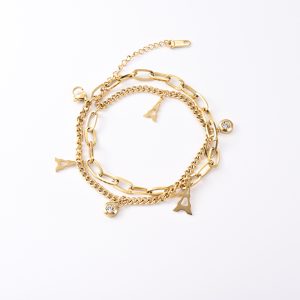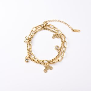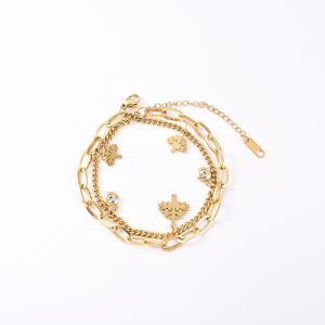 Cross-border wholesale stainless steel bracelet double layer fashion personalized female titanium steel18KGold hand jewelry does not lose its colorinsInternet slang $7.50