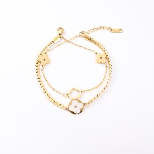 Strictly selected cross-border new bracelets niche premium feeling18KGold Clover Double Layers Jewelry No Tarnish Fashion Jewelry