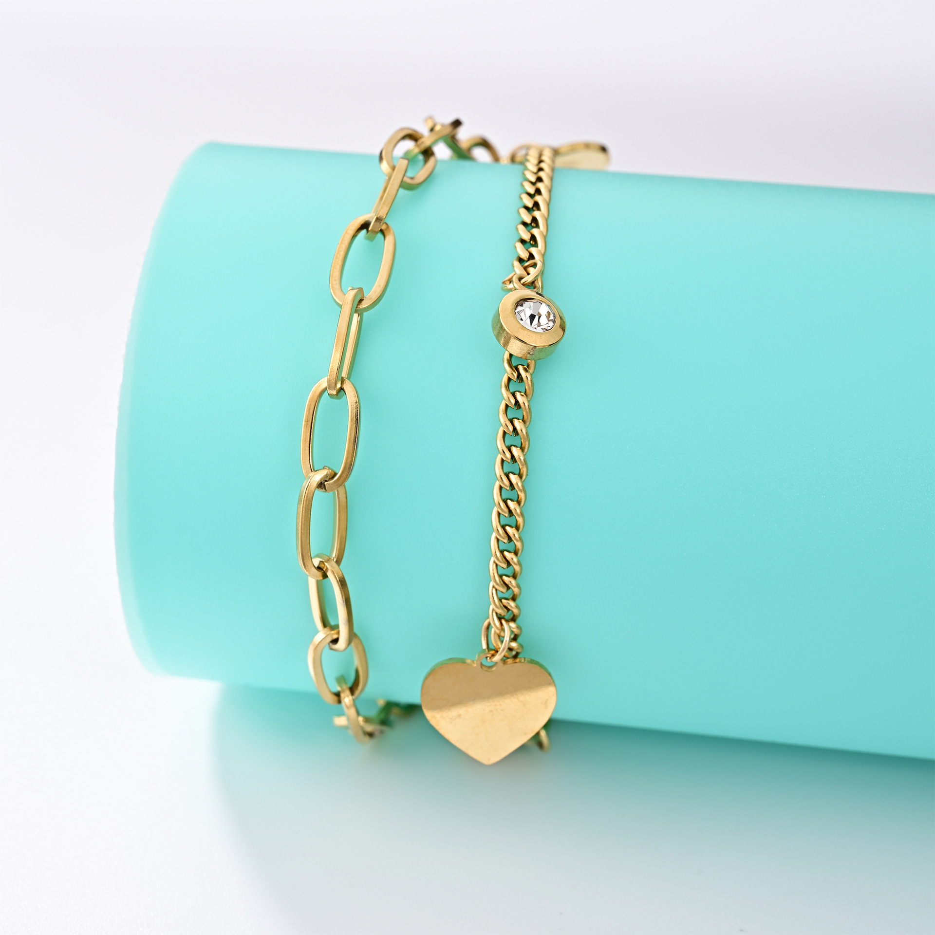 2024The new women’s bracelets do not lose color summer love stacking bracelet fashion personality titanium steel double chain hand jewelry – cosyshoes.store