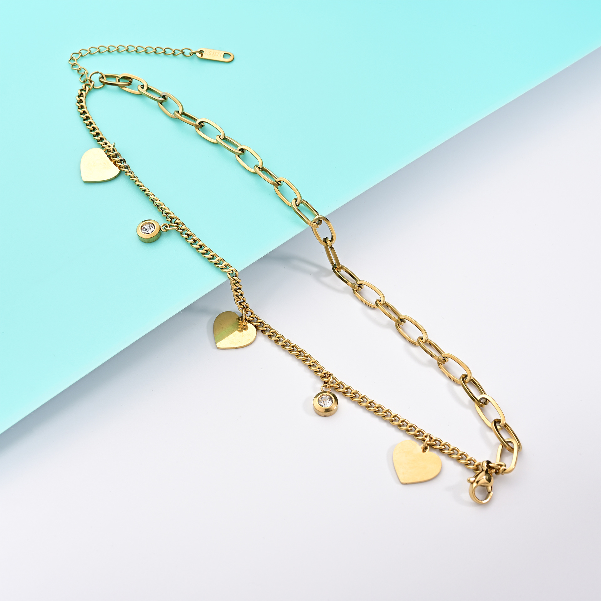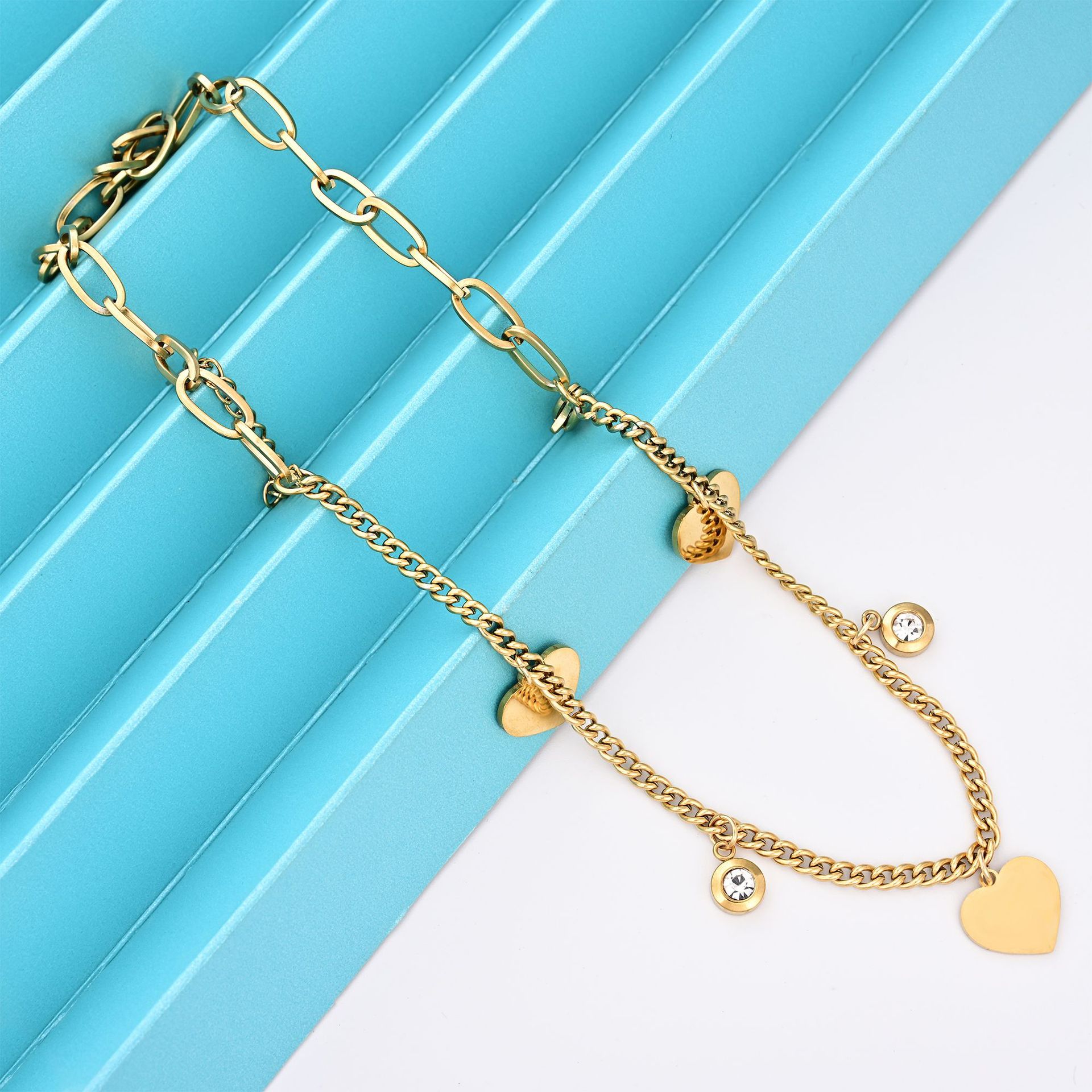 Premium Gold Stainless Steel Bracelet Fashionable Hundred Heart Titanium Steel StringsdiyPersonalized Handmade Colorless Hand Jewelry