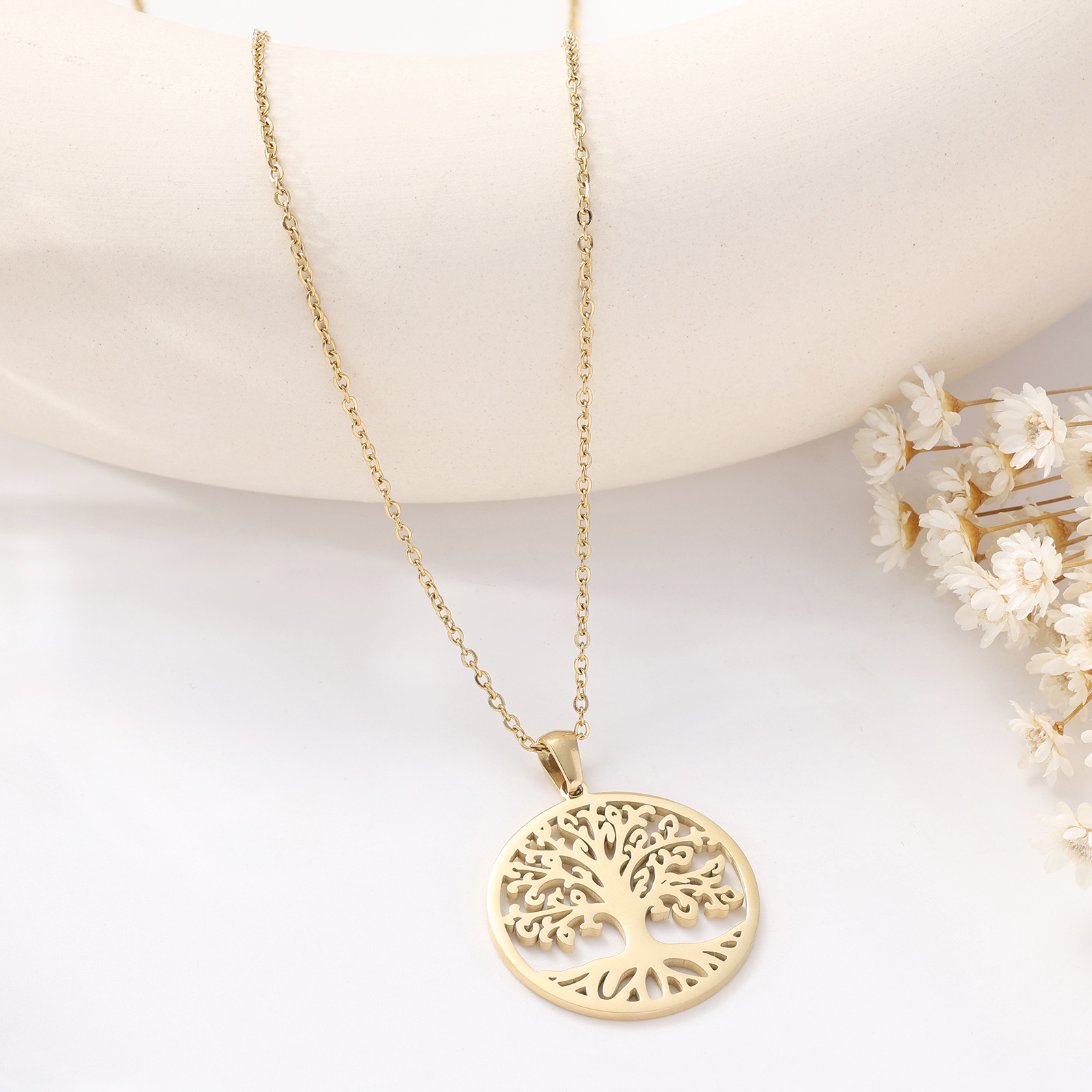 Home necklace Cross-border new stainless steel necklace does not lose color female summer fashion in Europe and the United States versatile simple round hollowing collarbone chain