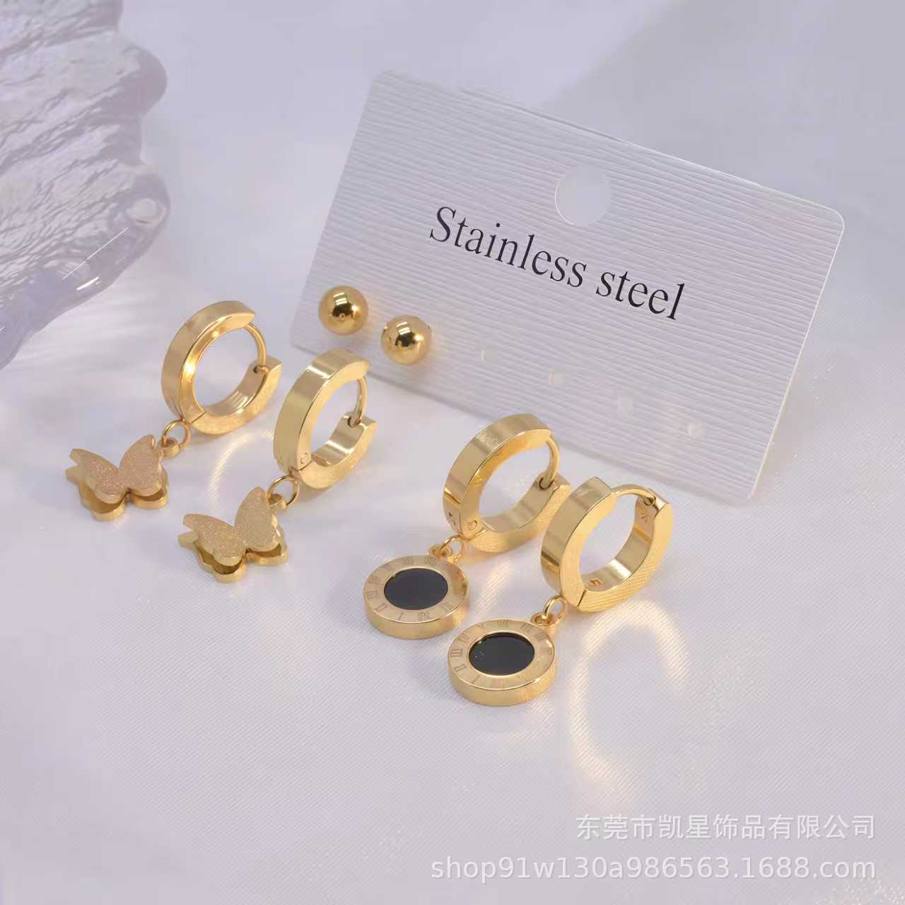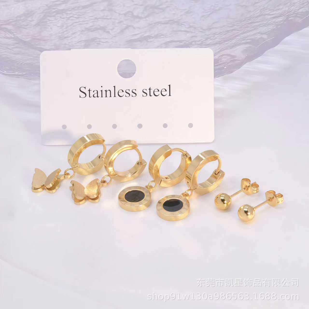 Simple titanium steel earrings earrings ear buckle Korean fashion with earrings small temperament earrings tide female flower elements
