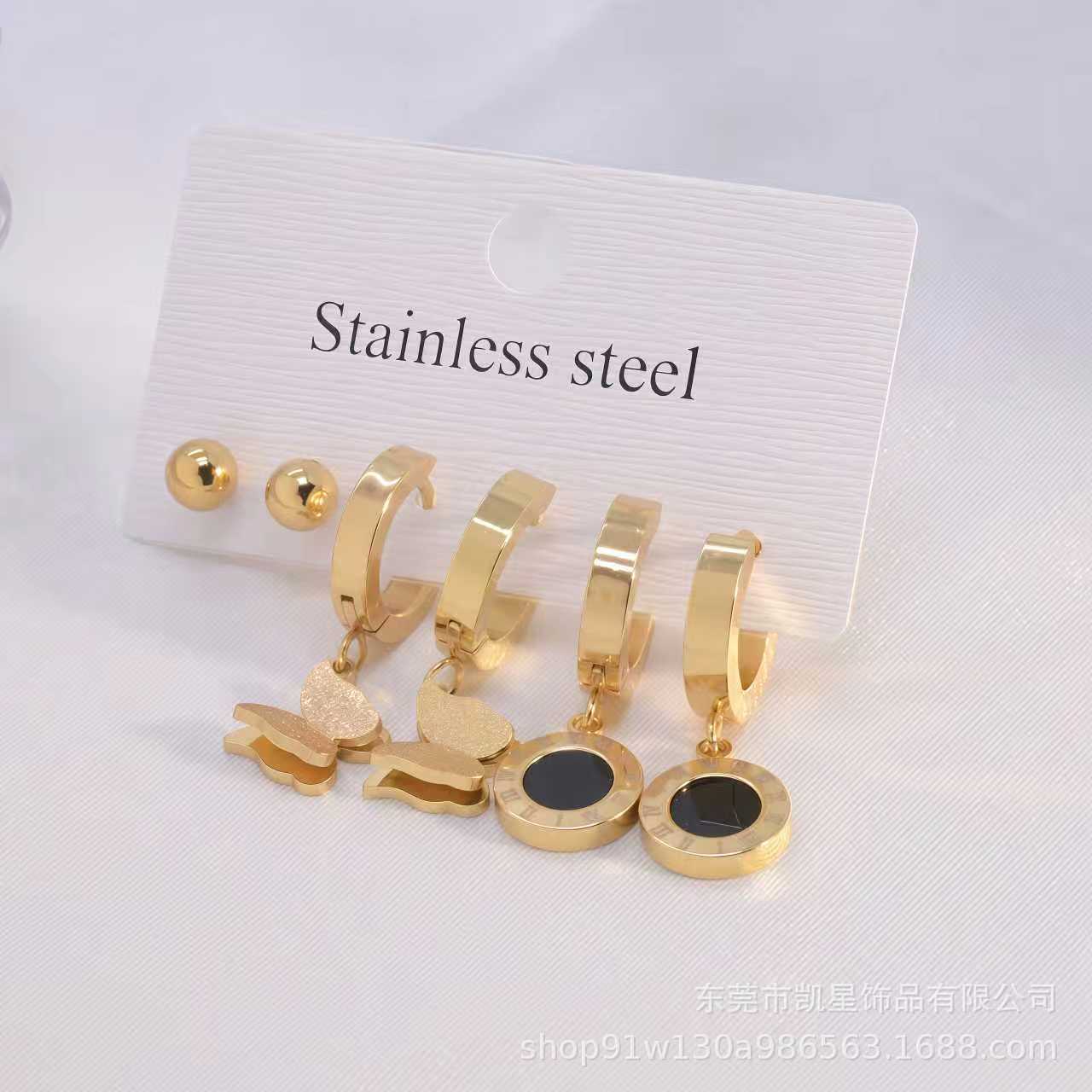 Simple titanium steel earrings earrings ear buckle Korean fashion with earrings small temperament earrings tide female flower elements $7.50
