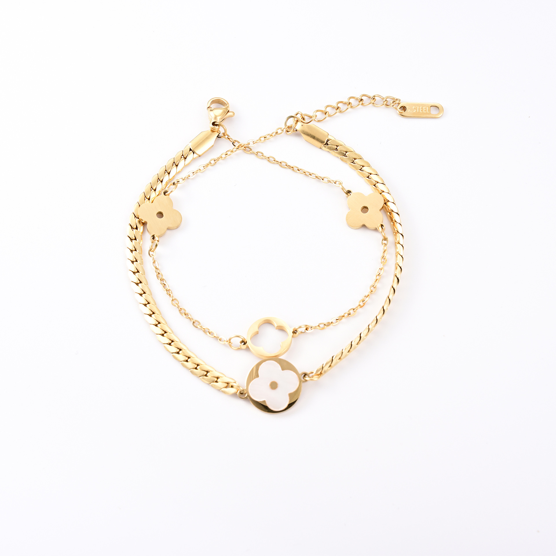 Strictly selected cross-border new bracelets niche premium feeling18KGold Clover Double Layers Jewelry No Tarnish Fashion Jewelry – cosyshoes.store