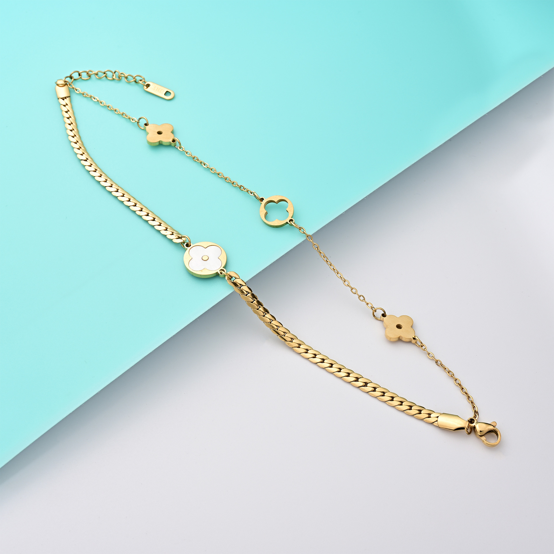 Gold print bracelet Europe and the United States fashion personality double-layer titanium steel stars four-leaf clover female trend niche design bracelet